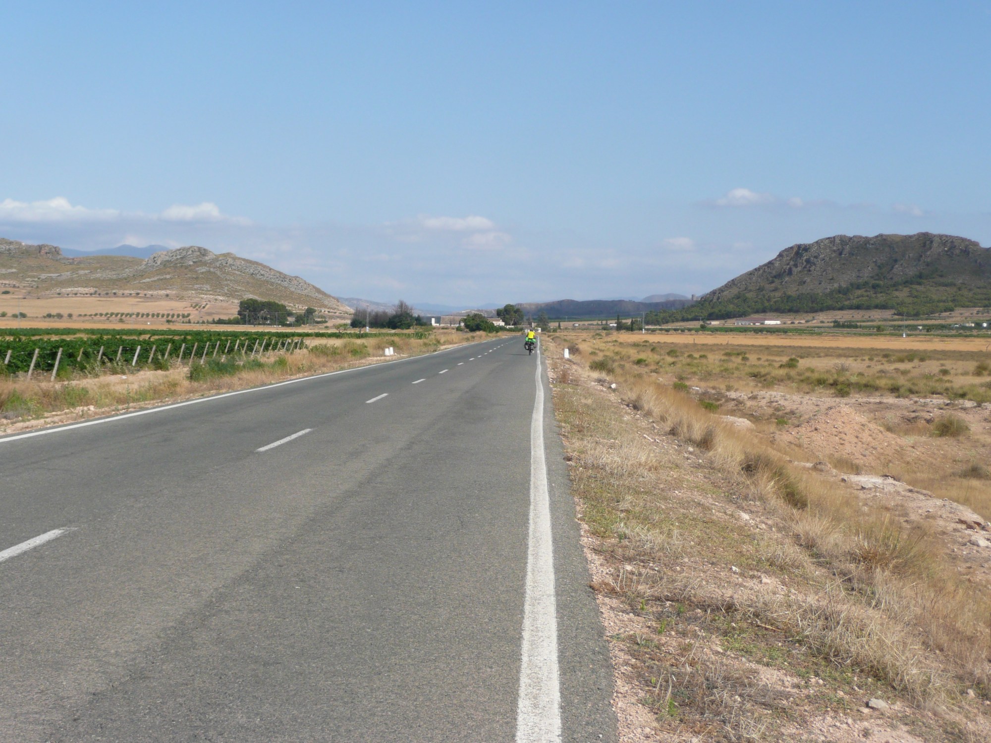 It is indeed fairly straight and pretty flat, but easy – no. We hadn’t counted on the wind which was strong and straight in our faces. We are in the Province of Castilla La Mancha travelling south through the famed plains of Spain again – surely, we should have the wind behind us this time – we had it in our faces all the way northwards back in April. Seems it doesn’t work like that but, nevertheless, we manage over 100 km and we are ever hopeful for an easier run tomorrow.