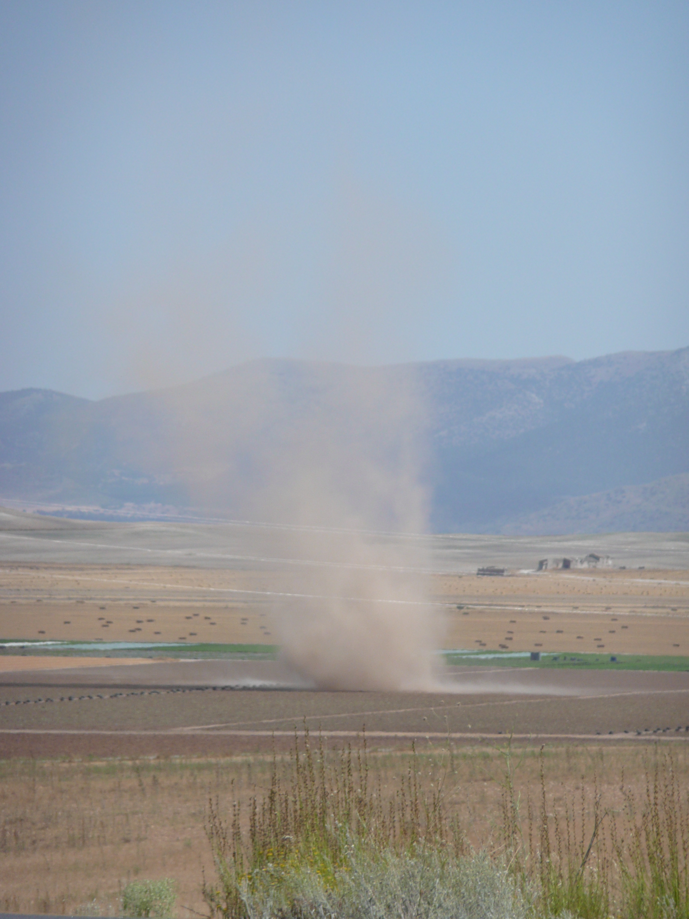 The temperature climbs ever upwards during the day – the afternoon is a hard slog against a hot wind along an undulating road that stretches to the horizon. A couple of days ago we saw a television report on a tornado in a town we visited – it overturned cars and uprooted trees – we see several whirlwinds suddenly appear in the fields adjacent to the road as we ride along and hope that we won’t get swept up in one.