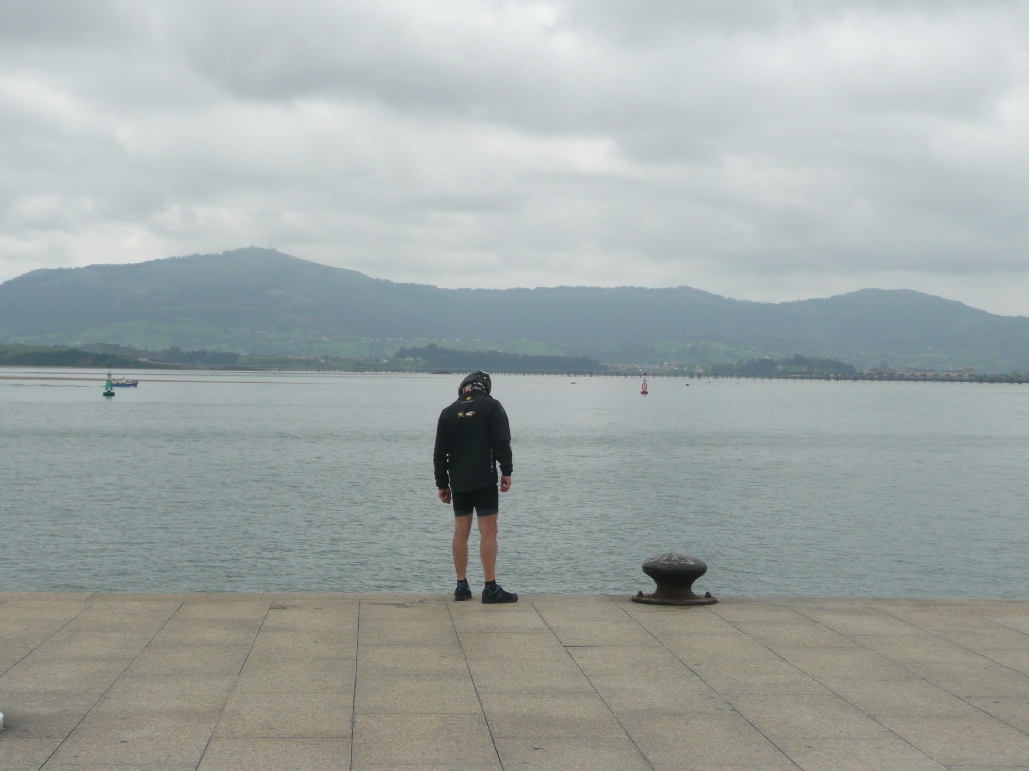 At last, today is the day we catch the ferry. We have to leave the hotel before 12 noon but don’t need to be at the ferry terminal until about 7.30pm, so we think we’ll ride the bikes along a cycle track we spotted which heads out alongside the estuary and towards a lighthouse on the point. Busy main roads in Spain always have a white line marking off a hard shoulder at the side of the road, about a metre wide, which is effectively a cycle track and on the smaller quieter roads there is not enough traffic to need a cycle track. However, in the cities various attempts are made to create cycle tracks, which, in our experience, usually end abruptly in the middle of nowhere. This particular cycle track is no exception – it just ends at a set of steps – the alternative being to push the bikes along the sandy beach. We decide not to get ourselves and the bikes covered in sand at this stage. Before we turn back we chat to a fellow cycle tourist who was also trying to fill time before catching the ferry.