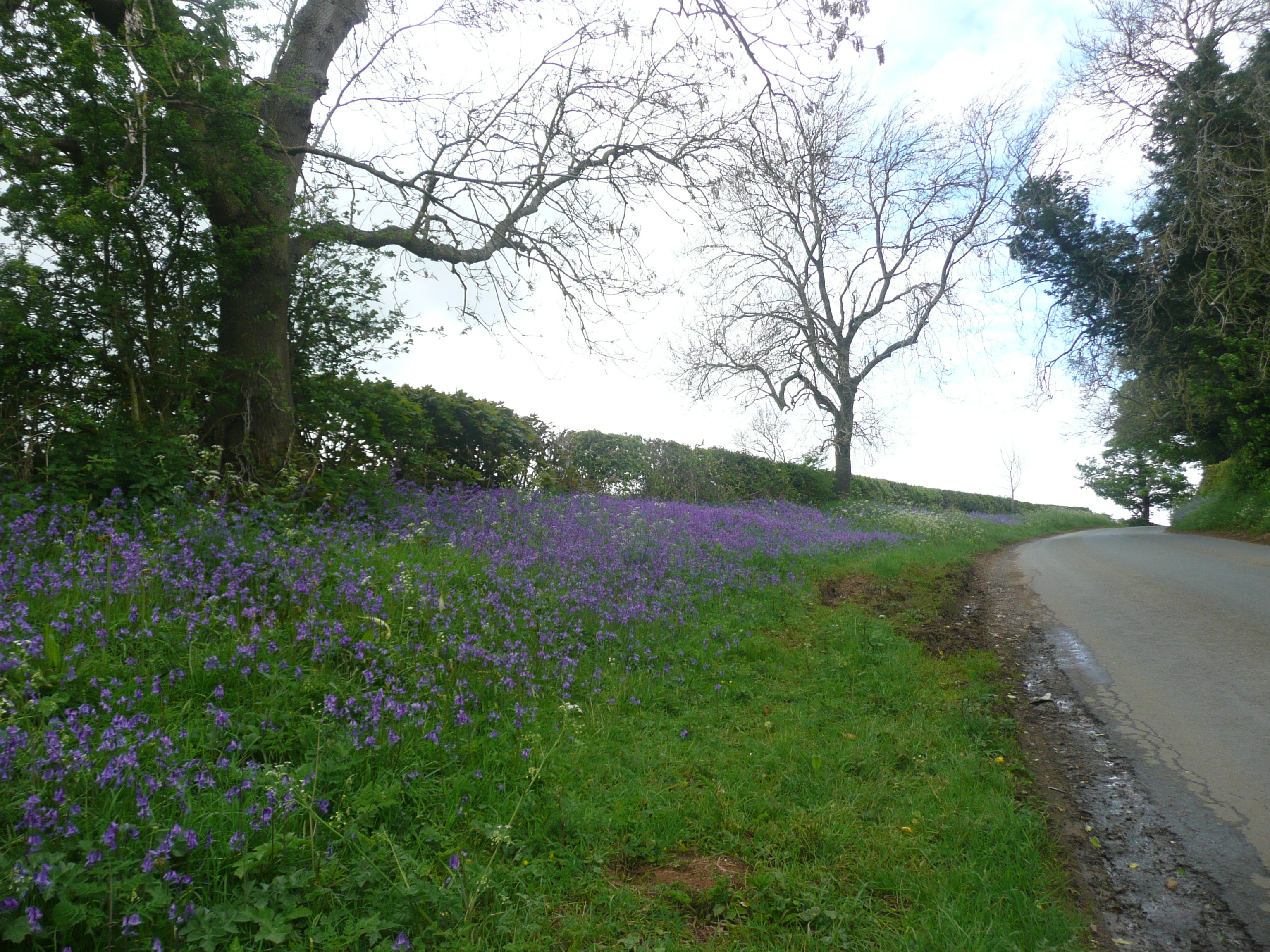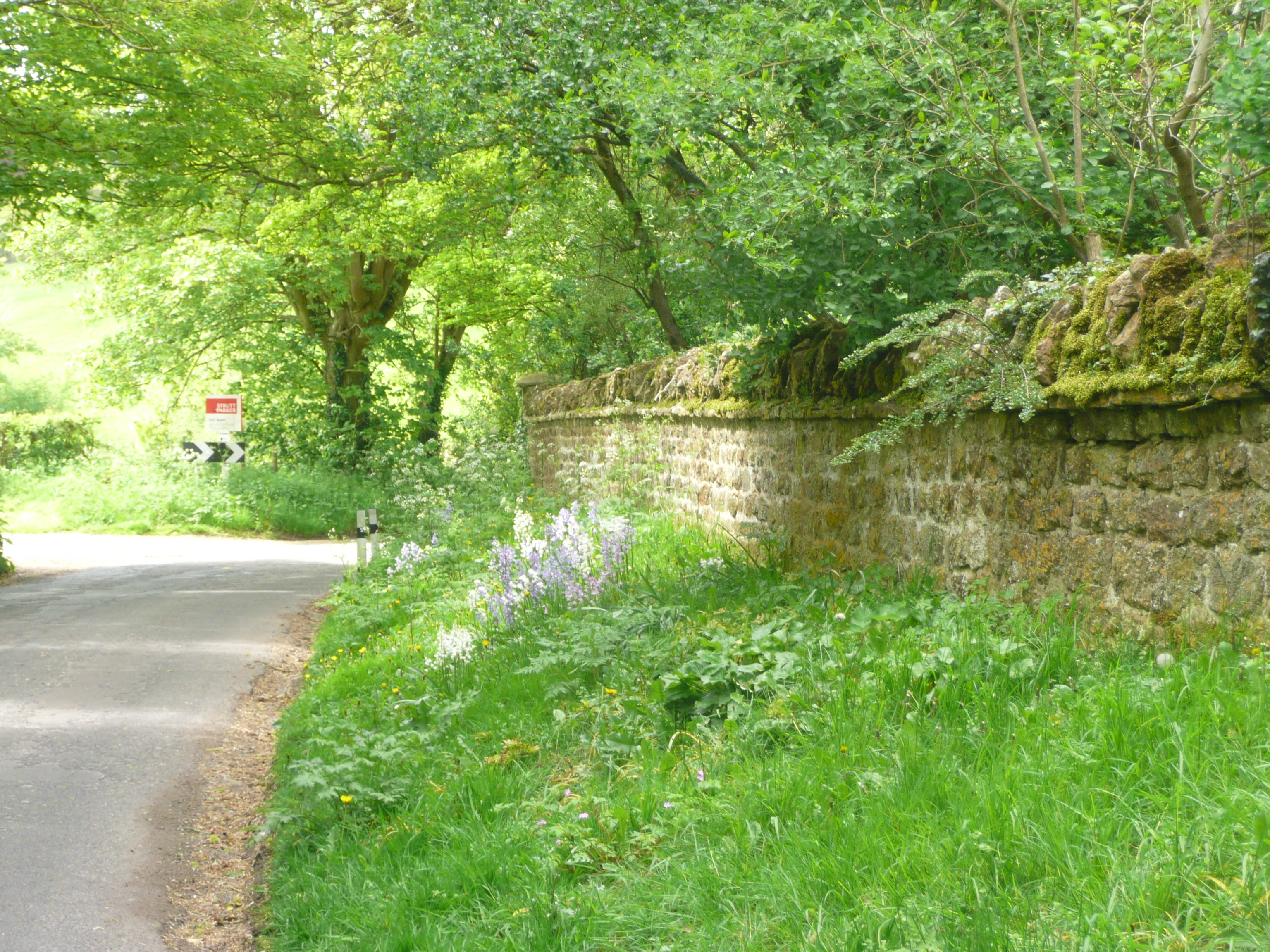 We ride up and over rolling hills all day – a patchwork of green and yellow fields early in the day and, later on, fields of green pasture surrounded by pale stone walls and dotted with sheep. The roadside is lined with ancient trees – beech, oak and horse-chestnut – the wind whipping the branches around. We can’t believe our luck in having the wind behind us most of the time; on the rare occasions we’re on a flat part of the road we can feel the wind pushing us along. We’re dodging the rain pretty well too – now and then we shelter under the tree canopy to avoid the heaviest showers – but at the most we’re a bit damp and certainly not soaked like yesterday. We keep passing through little stone villages that look too perfect to be real, a feeling that is reinforced by the lack of any inhabitants to be seen. I guess the weather is keeping everyone inside. We end the day in one of those picture-perfect villages and find accommodation in a pretty pub with a thatched roof; a room in the eaves with sloping floors that creak.