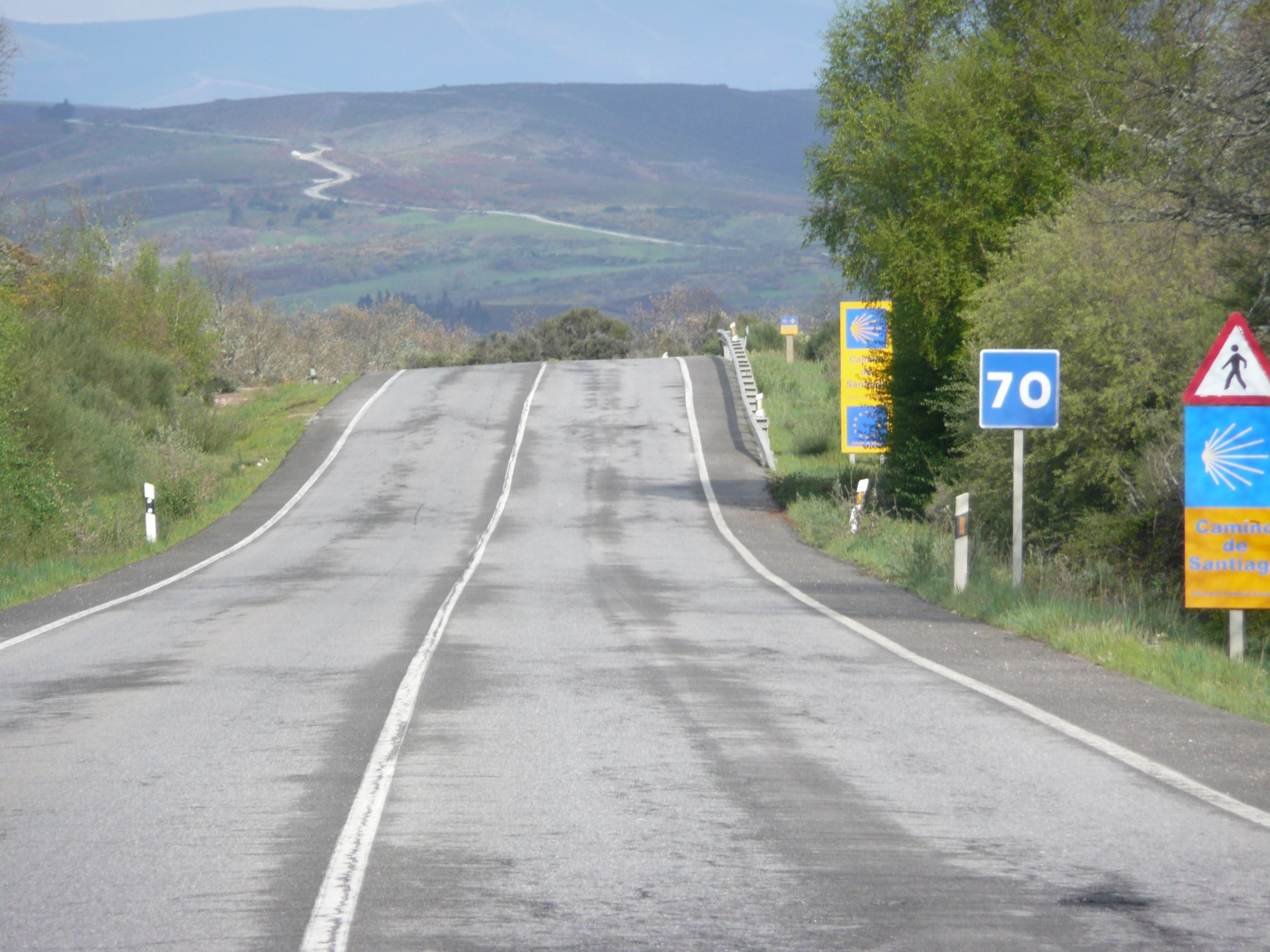 As we go over the pass we begin to see a continual stream of cyclists and walkers making their way up the other side – we’re whizzing downhill too fast to stop and talk. The downhill run carries us a good 10 kilometres before we start to twist and turn our way upwards again still surrounded in cloud, eventually running downhill for the final time before coming onto a long, flat road. For the first time in days we can power along in a high gear and it gives us the feeling of making progress. We decide to pass the place we thought we might stop at as we are getting along so well – it just means that we have to hope there is a place to stay in a small place further on called Mombuey.