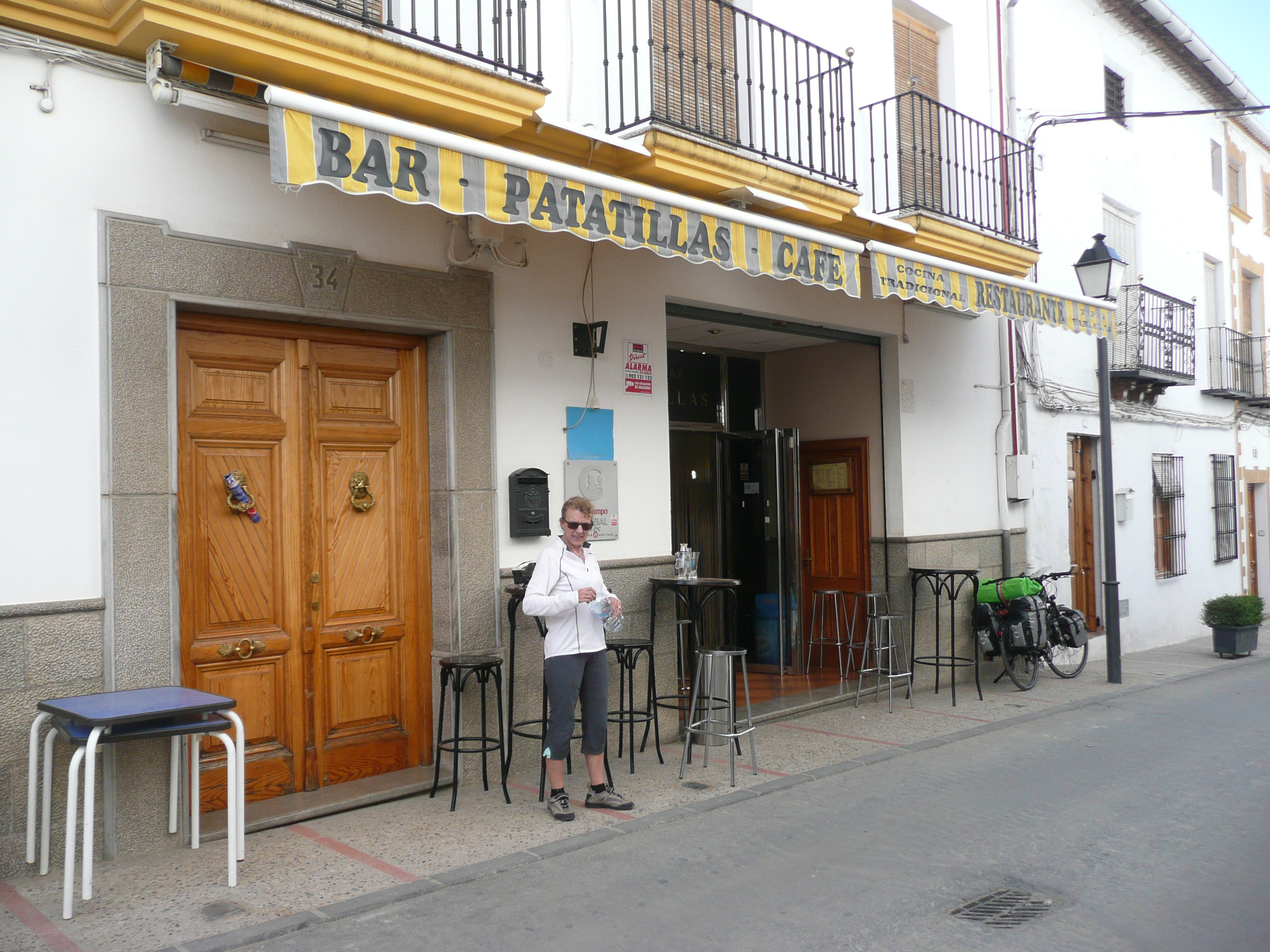The ‘touring legs’ are definitely developing. It feels tough getting to the top of the climb, but nowhere near as bad as it would have felt a couple of days ago. We are rewarded with a really long, fast downhill of about another 10 kilometres or so, just leaving a final undulating run into Jaén of about the same distance. When we arrive in the city centre the street thermometre reads 30 degrees, so it is no wonder that we feel hot. We have a quick pit stop for a cold drink and head towards the hotel we used before. This involves pushing the bikes on foot up some narrow and steep streets, but at least this time we know exactly where to head for. The hotel is a modern place right in the city centre which was incredibly good value for money last time we stayed. We’re hoping it still will be this time as we want to stay for two nights. The price is still exactly the same as three years ago – one of the advantages of a recession for consumers though not for businesses.