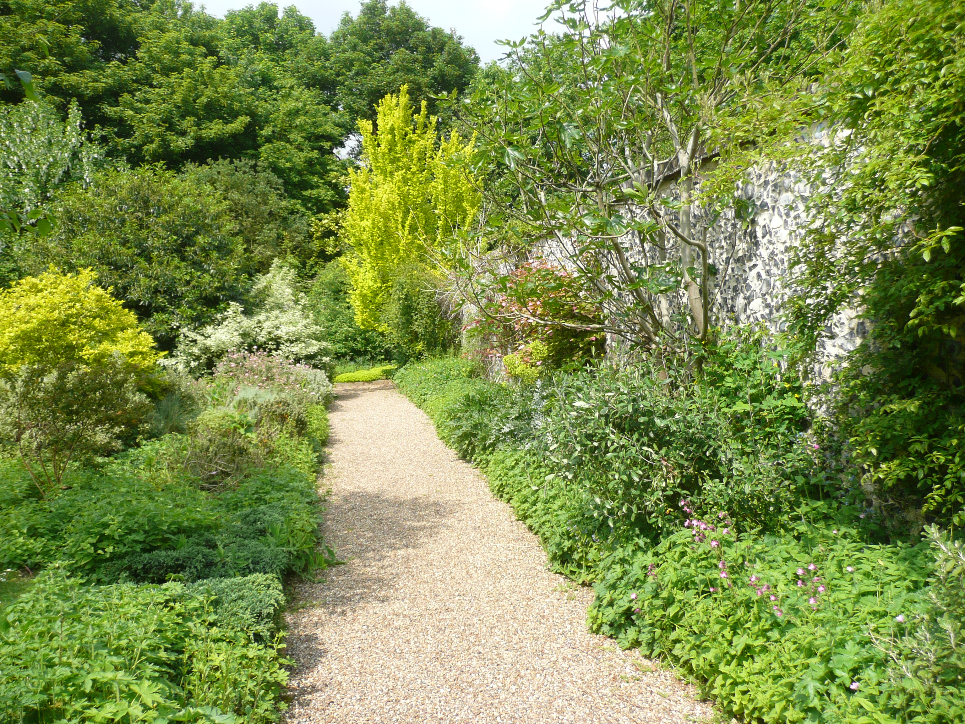 We’re in a relaxed mood and take our time to get going this morning. We have a quick look at Ely Cathedral – very impressive – and I chat to a fellow cycle tourist whilst Ken gets his hair cut. Eventually, we start out on the route hoping for a better day than yesterday. We have warm, hazy sunshine, it is definitely getting warmer each day. We vaguely remember the route as we are rejoining the road we travelled last time we went to catch the ferry from Harwich. It does not disappoint – little country lanes with lots of junctions to navigate, but today we have signposts, gently undulating hills and ancient woodland, loads of pretty villages with pastel painted thatched cottages or traditional flint walled houses, little stone churches – a typical English landscape.