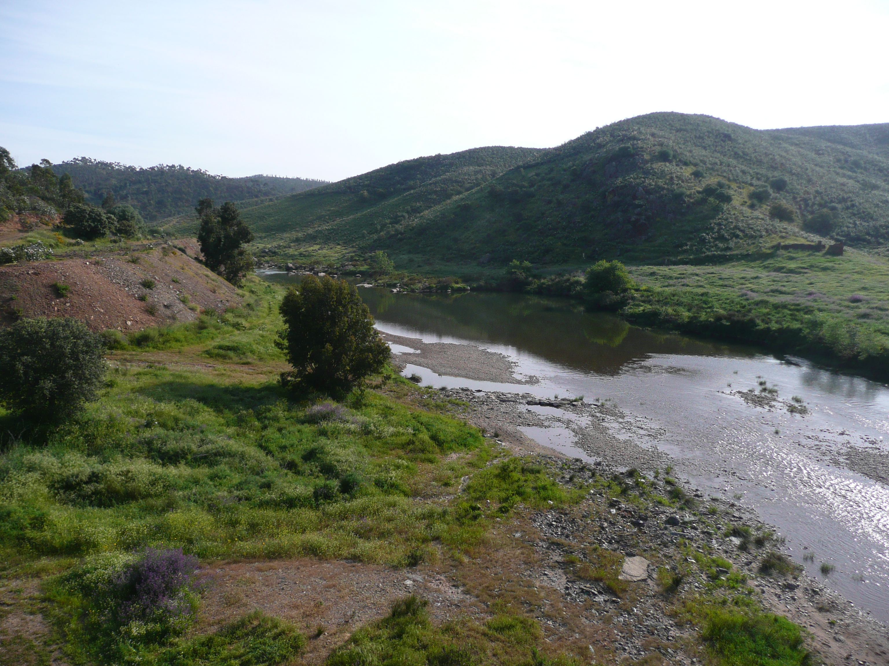 We finally emerge, ready to go. To our surprise we find that today, although the sun is out, it is cold and for the first time on the trip we need to wear two tops. The terrain and the weather are a bit of a repeat performance of yesterday, including the headwind in the afternoon. The big moment of excitement is crossing into Portugal. We also have a bit of an action replay at the end of the day trying to find somewhere to stay. We really want to camp for a number of reasons – the bikes need cleaning and oiling, all the clothes need washing and we would like to take a rest day – all of these things are much easier to do on a camp-site. We reach Moura, our intended destination, and ask several people about camp-sites in the area and receive several different and conflicting responses. I get what seem to be fairly clear directions from a policeman and we cycle for about 8 kms before giving up looking for a camp-site, returning to Moura and checking into a hotel. I’ve since looked on the internet and there are no camp-sites in this area. Very strange. We’re not sure whether to take a rest day tomorrow or not – we’ll see how we feel in the morning.