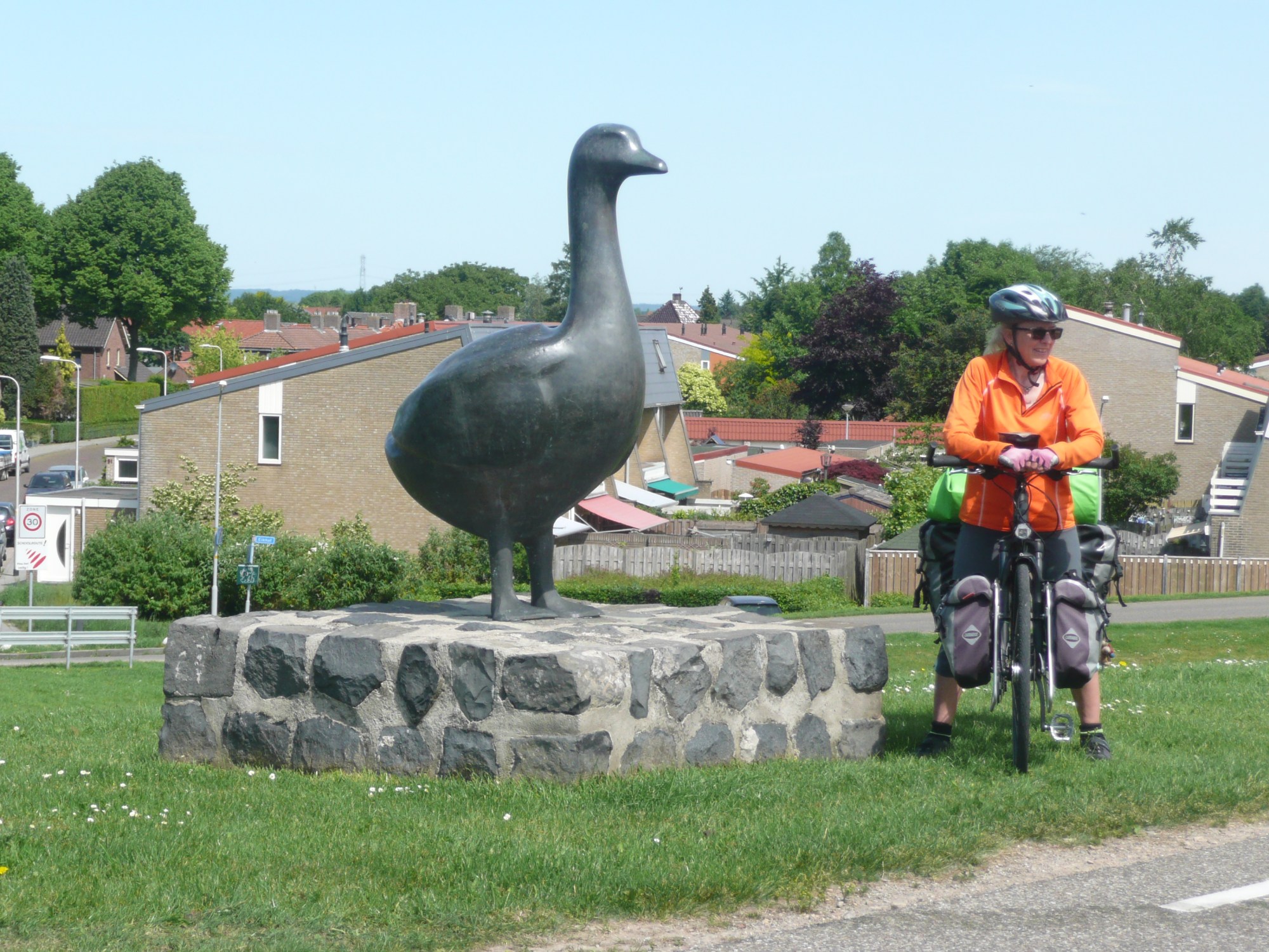It is a headwind, but it’s not too bad – not enough to spoil the day. We’ve decided to get back on our original route by crossing the open countryside and avoiding getting involved in more road-works. We’re really organised now with the way-finding – at the first route board at the side of the road I write down all the numbers of the junctions we need so that we can just keep going without having to stop and consult the route boards. It works a treat, so basically, we have it all sorted out just as we are about to leave Holland and move into Germany where the marking of the cycle routes is completely different.