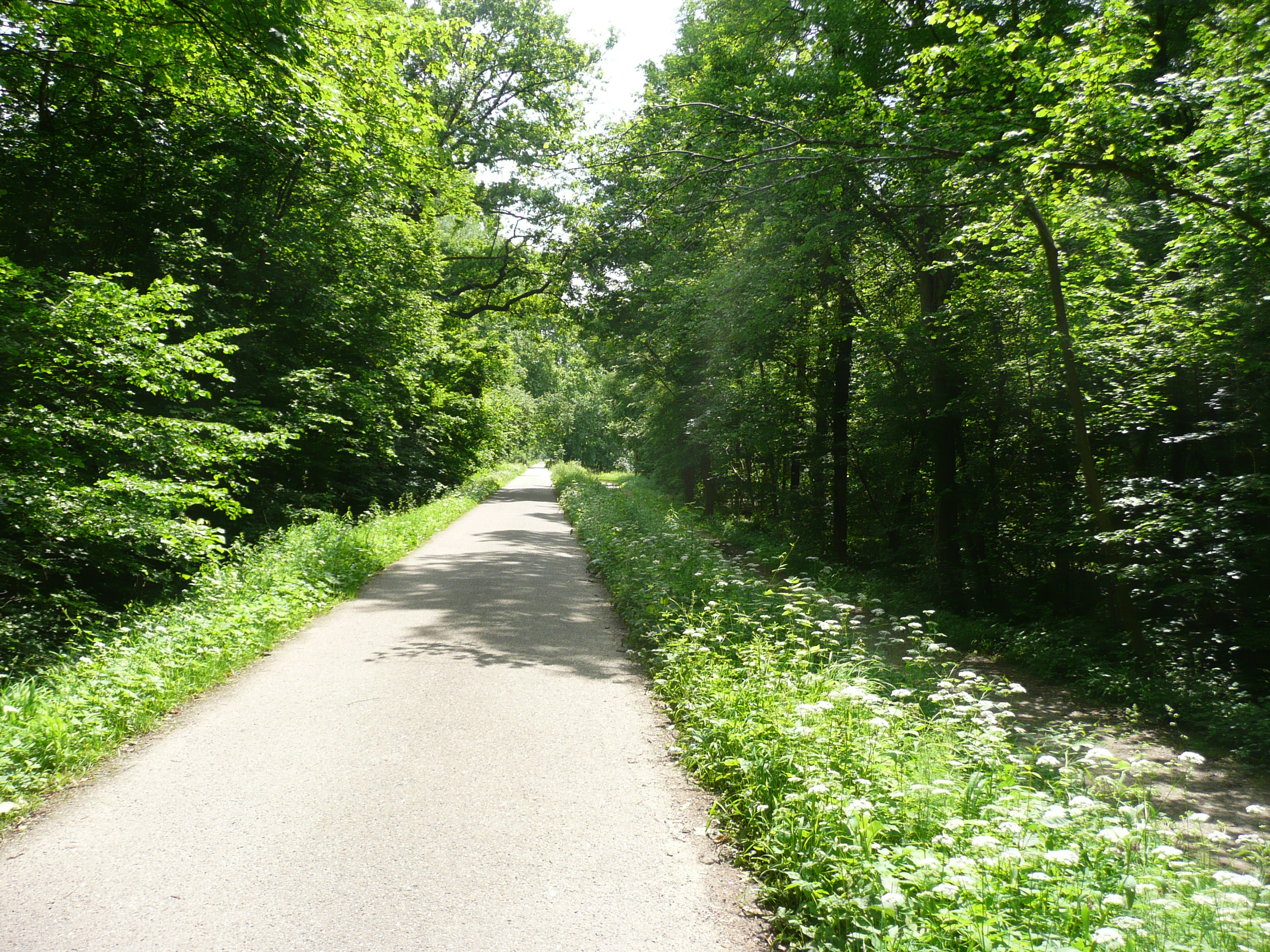 The cycling itself is the most straight-forward yet, literally. The first 50 kilometres are on a straight, level track with the flood bank at the side of the Rhine on one side (unfortunate, because this blocked the view of the river) and a row of tall trees on the other. It was like cycling on a rolling road with a green stripe each side. We then had a bit of variety as came into a forested area on the outskirts of Strasbourg. We had taken the decision when we set off this morning to risk going through Strasbourg and hoping that the cycle track the other side was open. Just as we emerged on the south side of the city we saw a big yellow ‘Road Closed’ sign, but fortunately, just below it said from 2 to 6 June – phew, that was lucky.