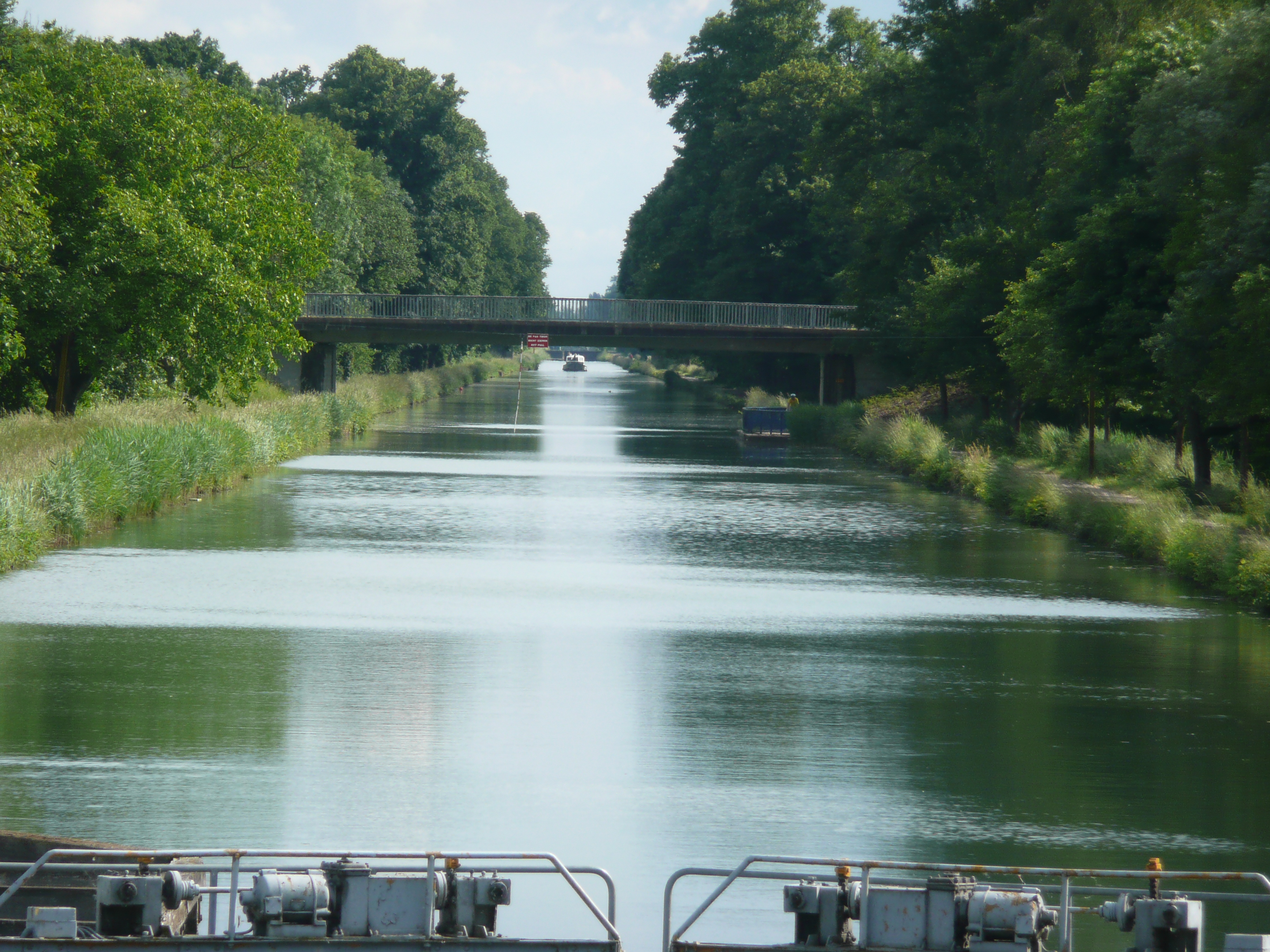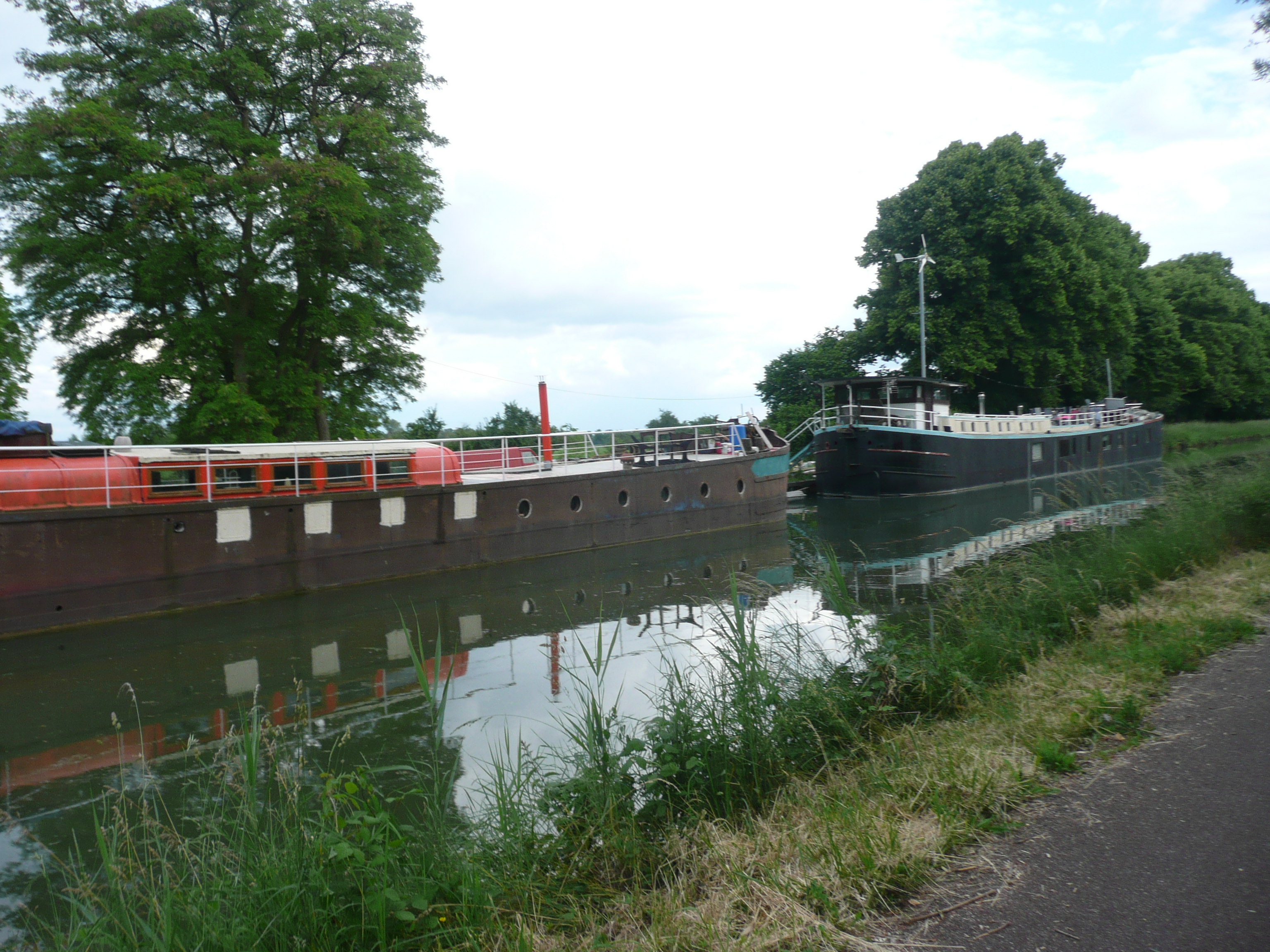 The next 30 kilometres or so were along the tow path of the Canal du Rhone au Rhin, also dead straight but with the advantage of a view of the water and the boats as we cycled along. As we arrived at the camp-site we had identified on the map for our overnight stop we were greeted by the sight of a pizza van standing in the village car park. Pizza out of a box it is then – our staple diet when in France. Still, tomorrow we’ll be back in Germany, land of the sausage, like I’ve said before we don’t like to make things too easy for ourselves.