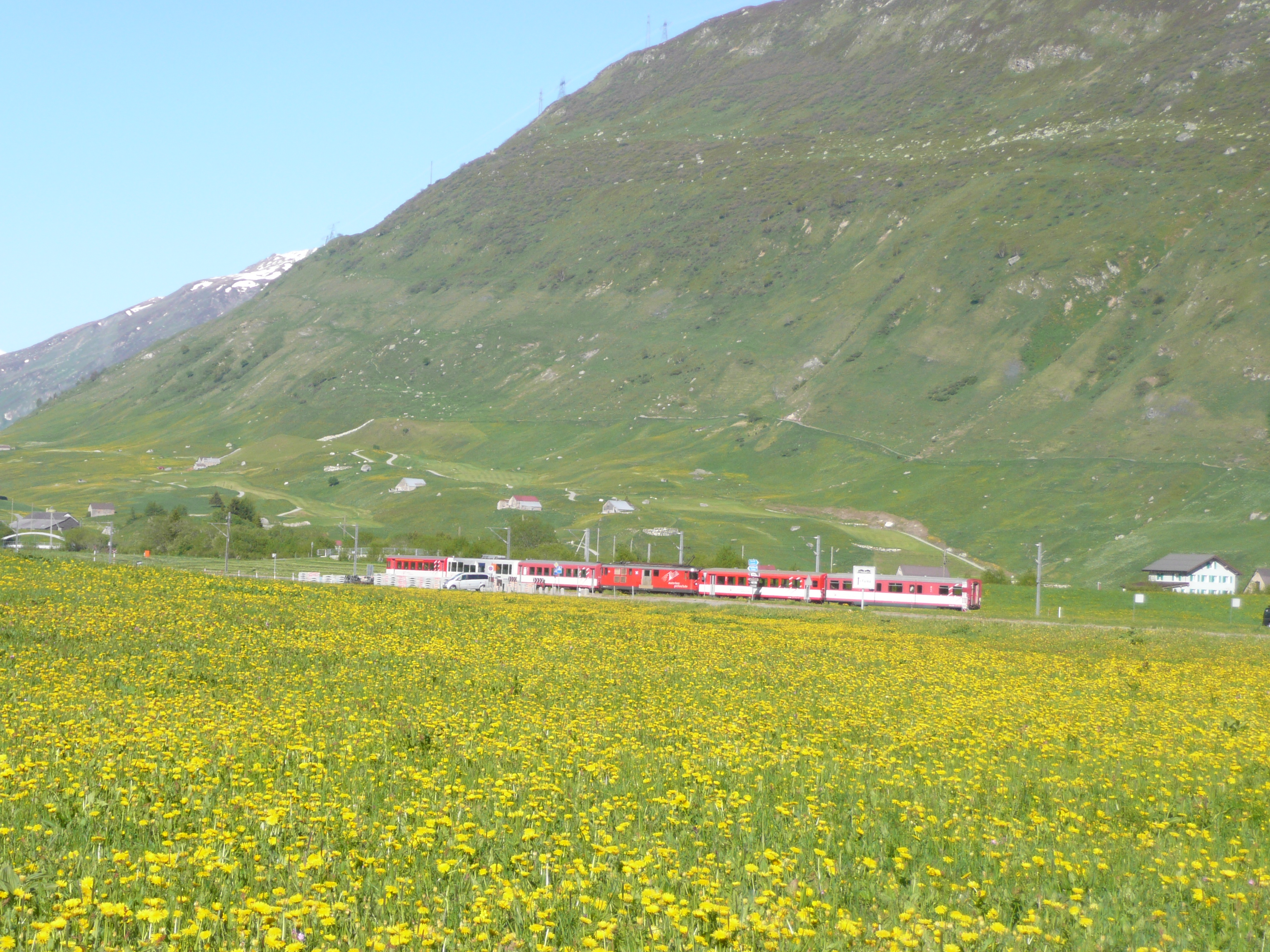 We set off with high hopes of our trip over the next couple of days along the Rhone, especially, as for once we are going the right way – that is we are following the river down the mountain. We established last night, however, that there are two possible routes out of the valley – one involves a four-hour climb to a glacier and the other involves a 30 minute journey through a tunnel on a car transporter train. What would you choose? For once, we choose the route you would have done and get on the train.
