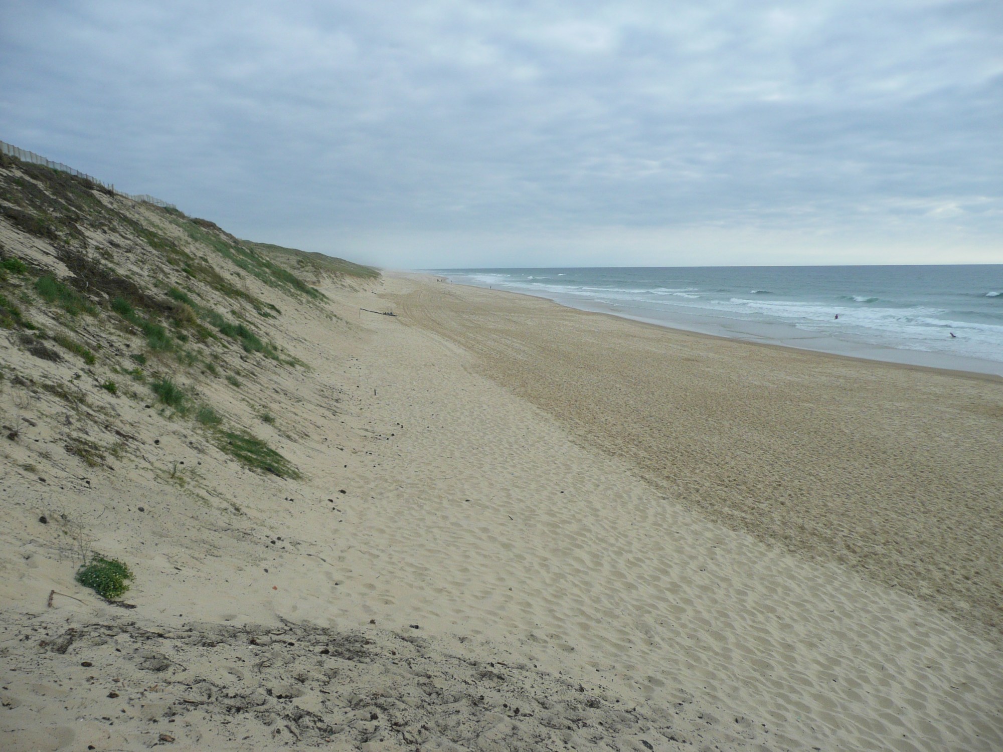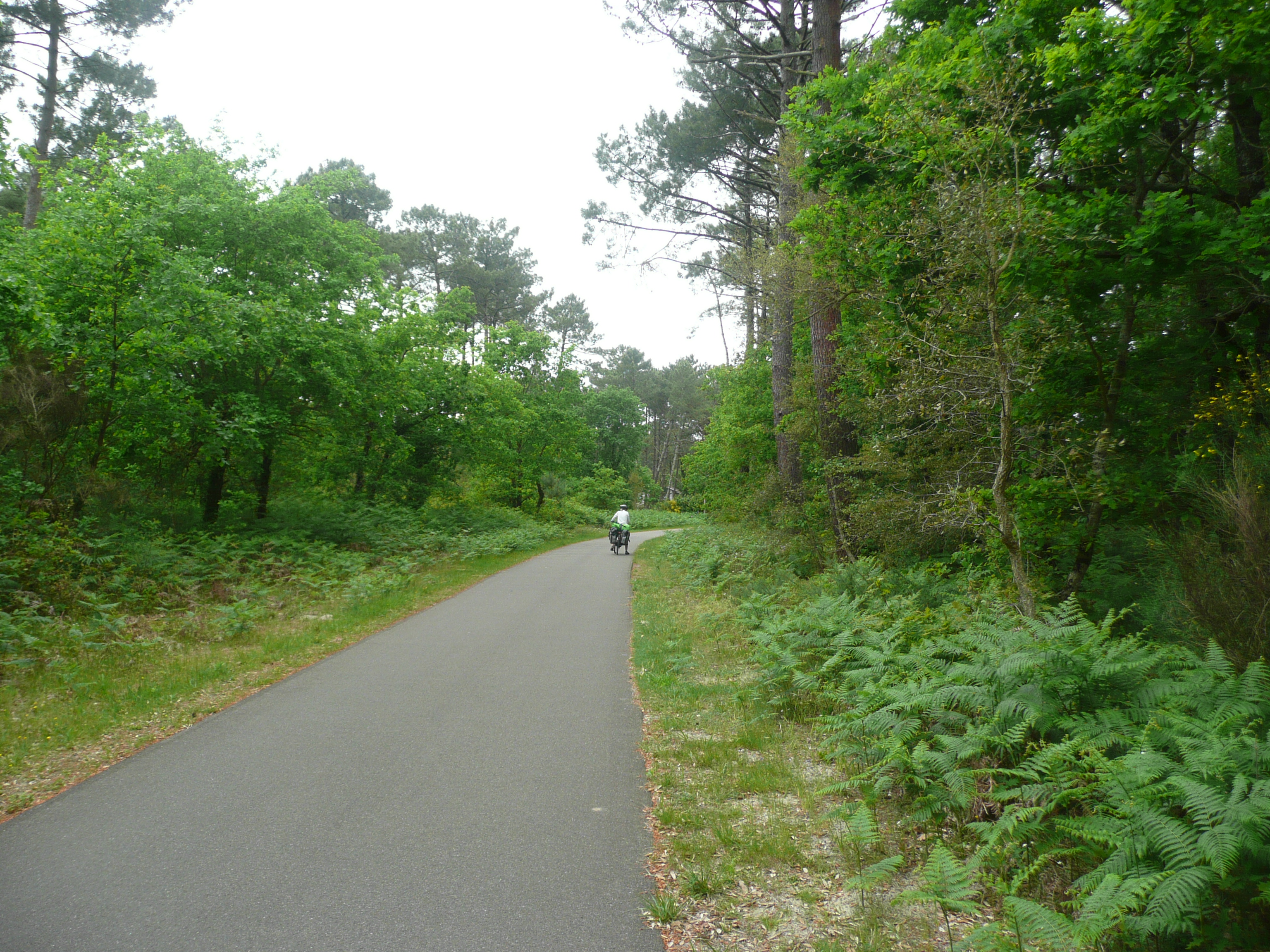 The ride today turned out to be different in every way from the one we did yesterday; the sky is overcast with the threat of rain hanging in the air. The track is flat, straight and smooth for the whole day. The scenery is unchanging, pine forest for kilometre after kilometre, a high sand dune to our left, beyond which roars the Atlantic ocean. Today is all about the cycling rather than the landscape, just enjoying turning the pedals and the sense of freedom.