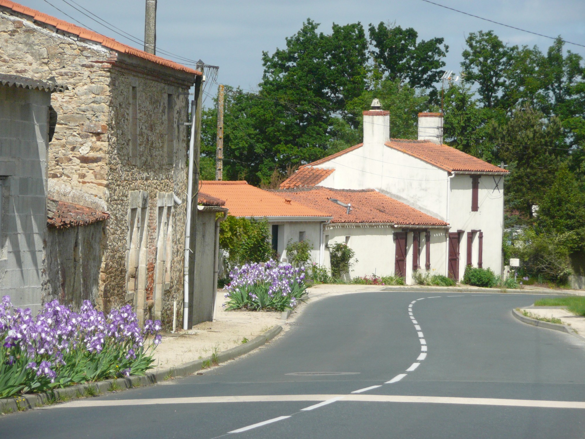 Refuelled, we carry on to Machecoul. The countryside is very much like yesterday – pretty hedgerows full of cow parsley and buttercups, fields full of cereals and the odd field of cows. The sun has disappeared by now and we are left with grey and clouds, so we power onwards.