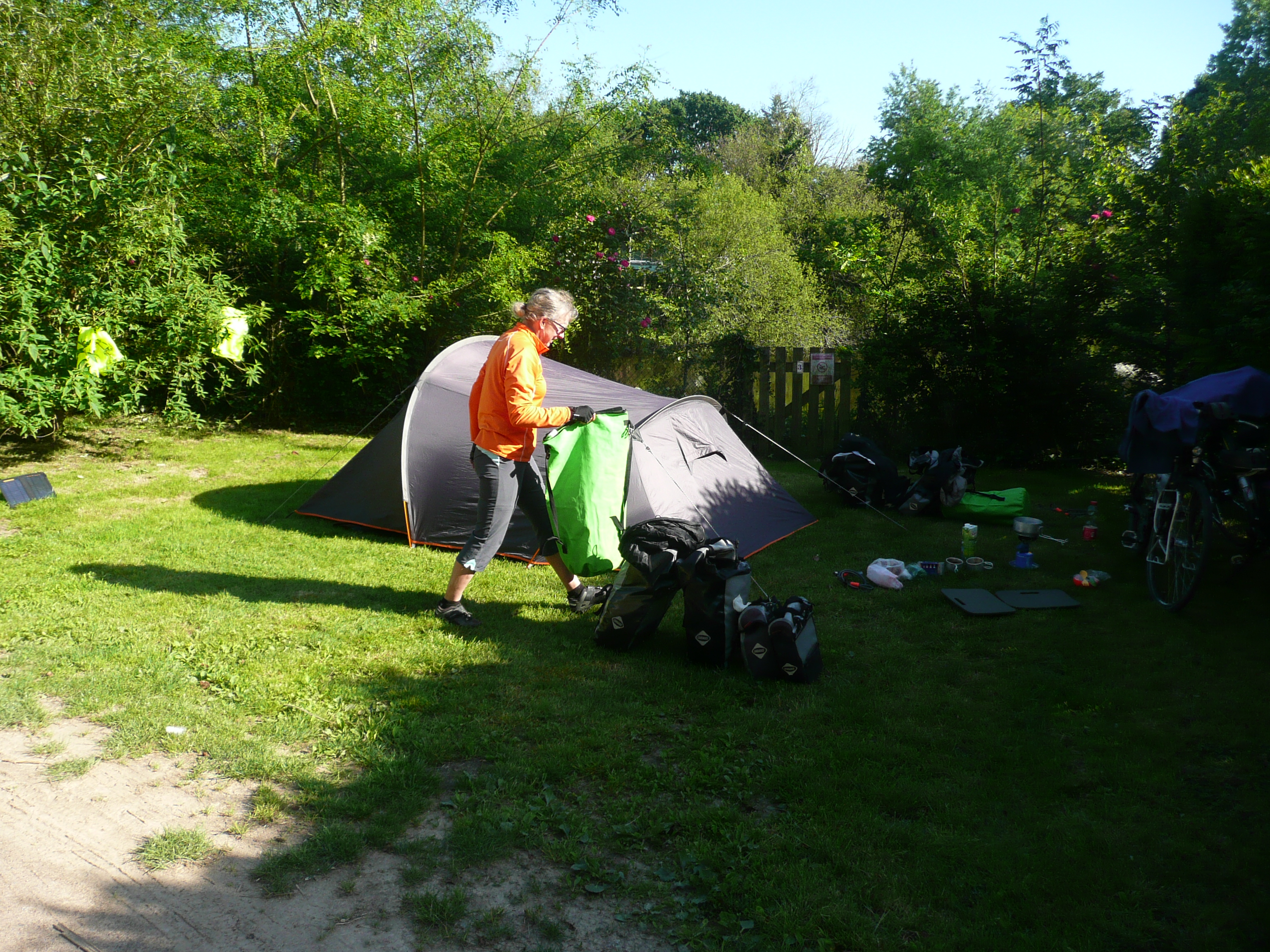 We had a bit of difficulty finding the campsite in the village we intended to stop at, but eventually we did find one in the next village which turned out to be one of the best of the tour so far. We had a nice flat plot with short grass and the whole place to ourselves – literally, as the owners waved goodbye to us for the night and left.