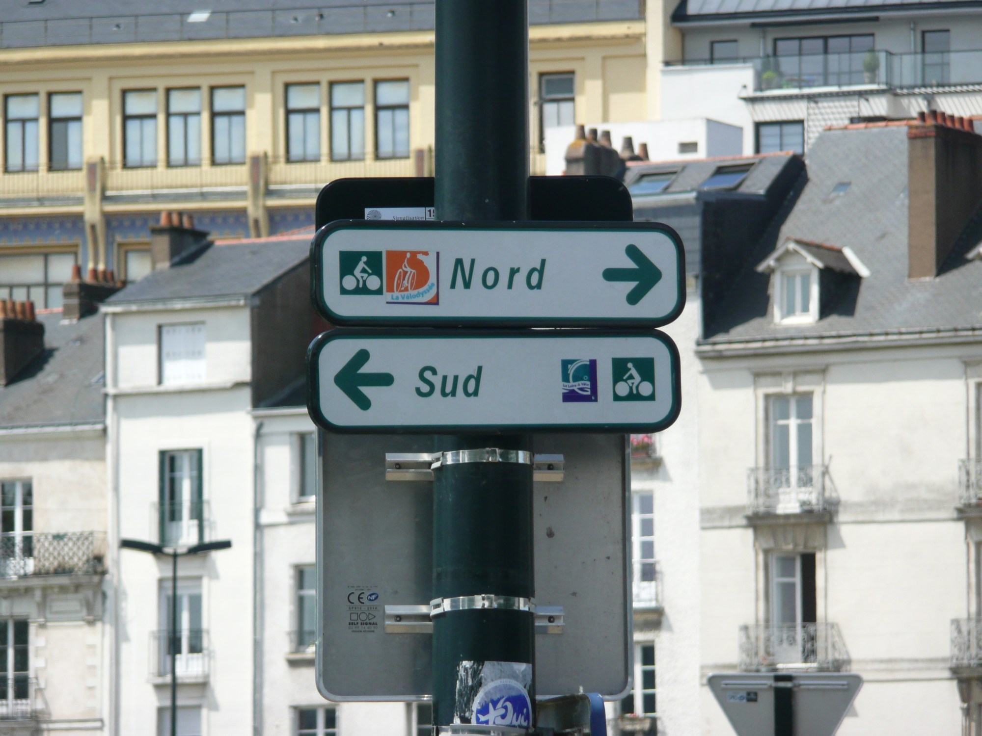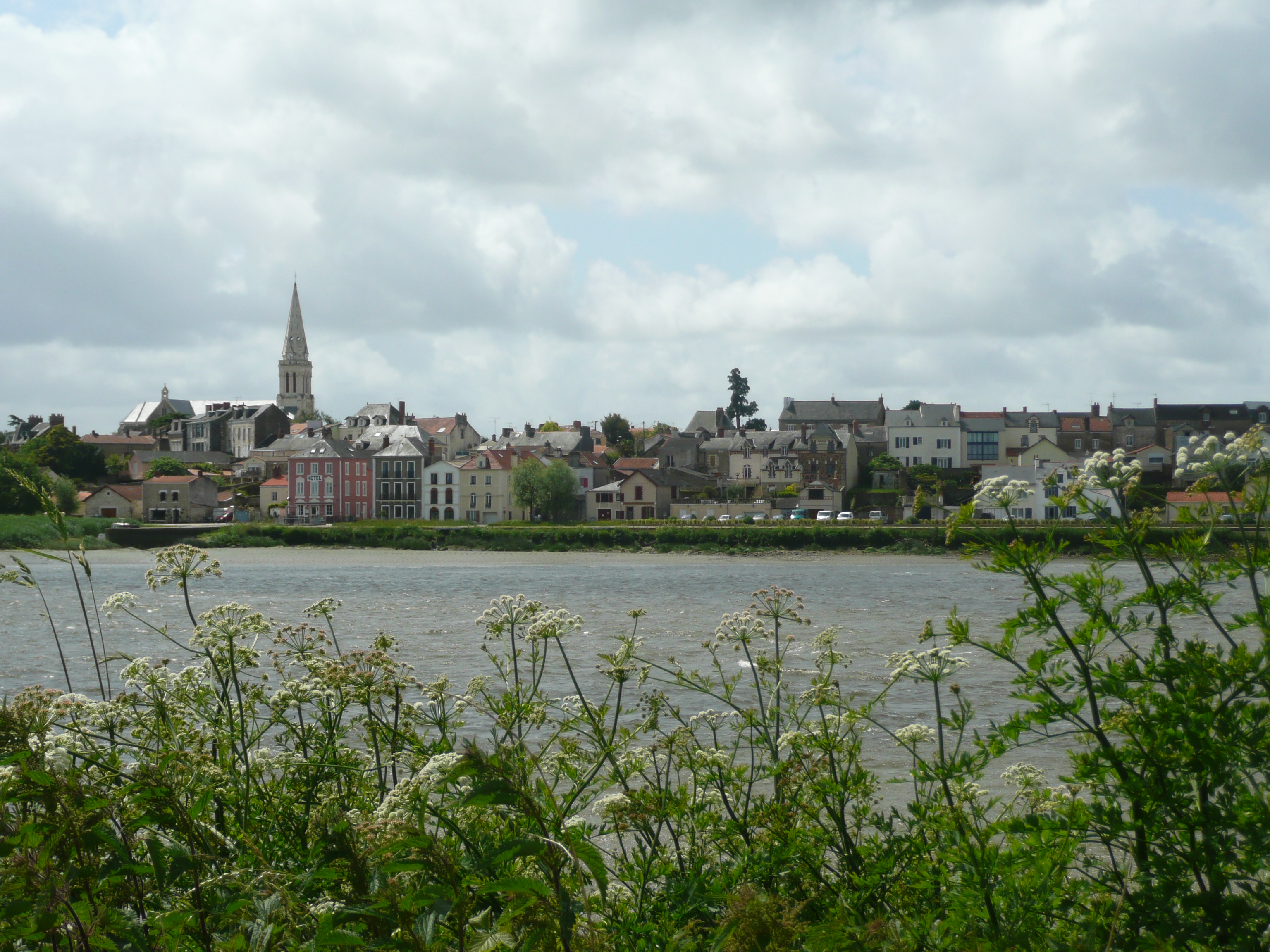 The cycle route takes a path right alongside the river most of the time, even when passing through Nantes, which is a big city, we do not lose sight of the river. After Nantes we are back into farming countryside riding mainly along farm tracks. There are gangs of workers in the fields picking salad crops. We are getting back into the swing of spotting the cycle path signs, which, as I have said before, are posted in some strange places and are not always obvious. On one occasion I had spotted the sign at a T-junction ahead facing the track we were travelling along, but when we reached the junction it wasn’t there. Ken thought I had been hallucinating, but I knew I had seen it. I got off the bike and searched in the ditch – there it was; a tractor had driven by as we approached the junction and it must have knocked the sign off!