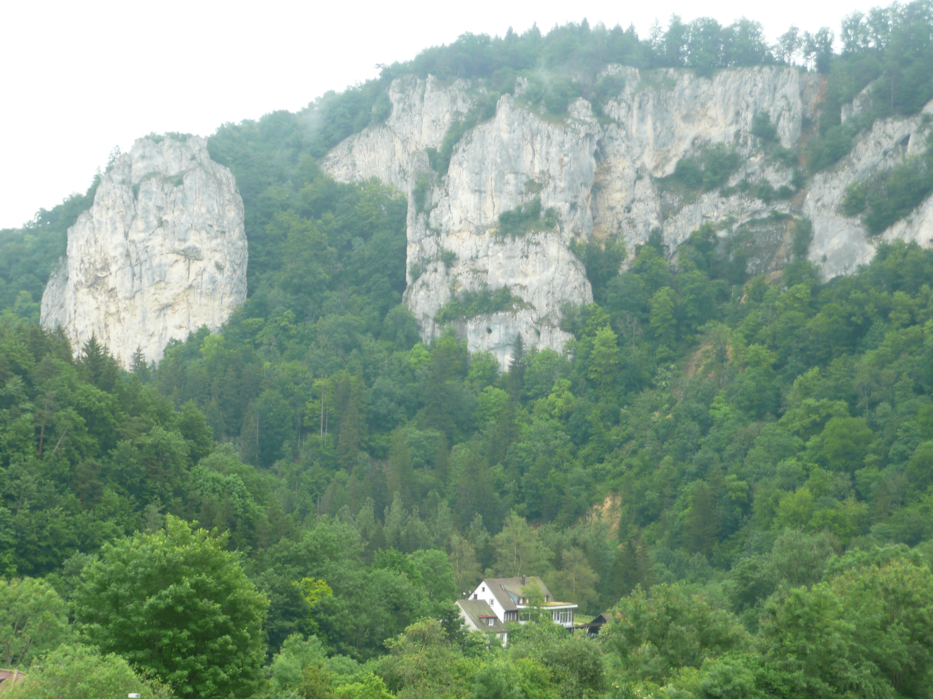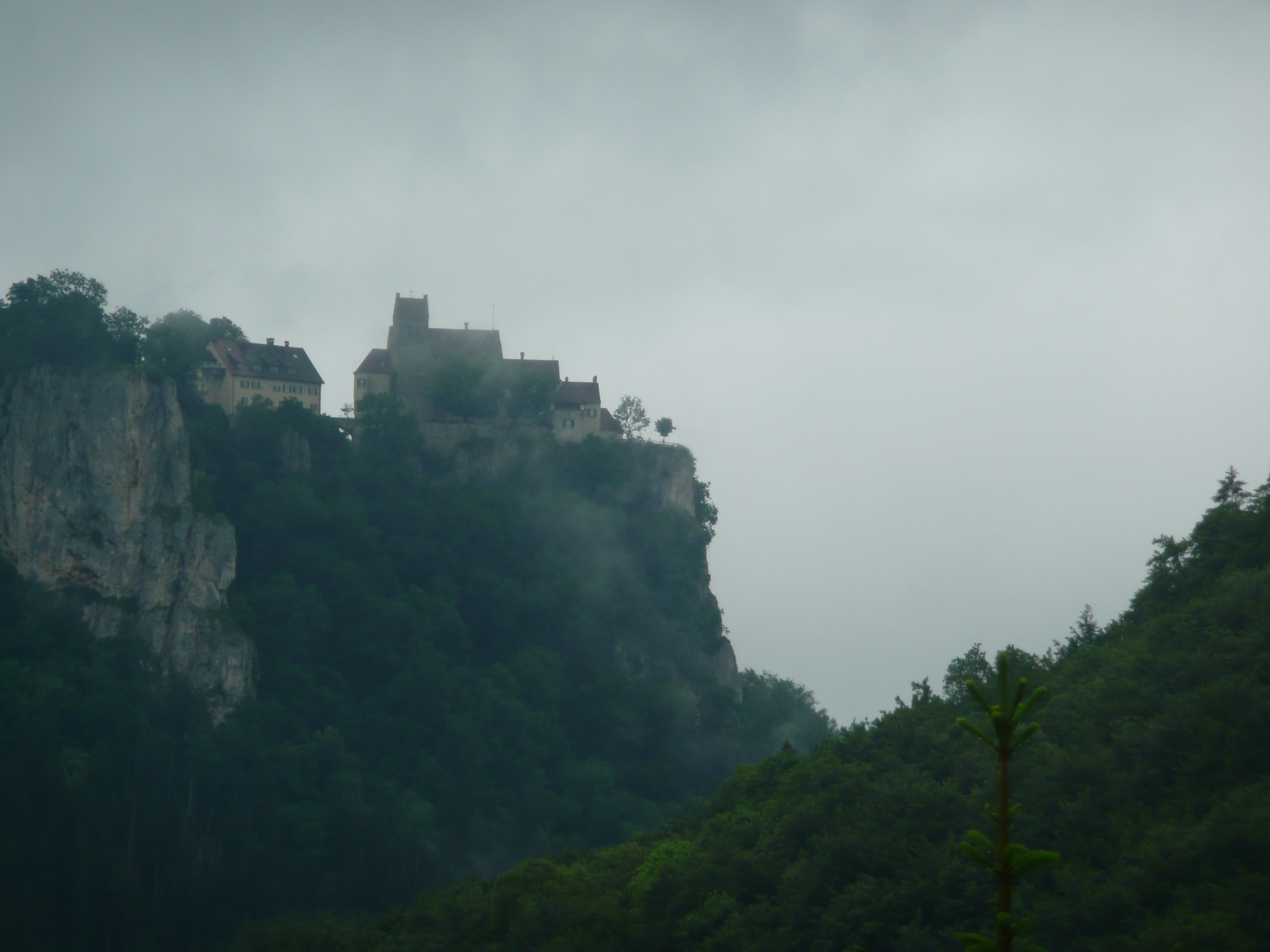 The big compensation once again is the landscape. The river runs along a valley which gradually becomes surrounded by limestone cliffs up to 300 metres high, eventually narrowing to a gorge, the upper Danube valley. Incredibly, castles and palaces were perched high above us, balancing on the cliff edges. The scenery is dramatic, made more so by the gloomy atmosphere.