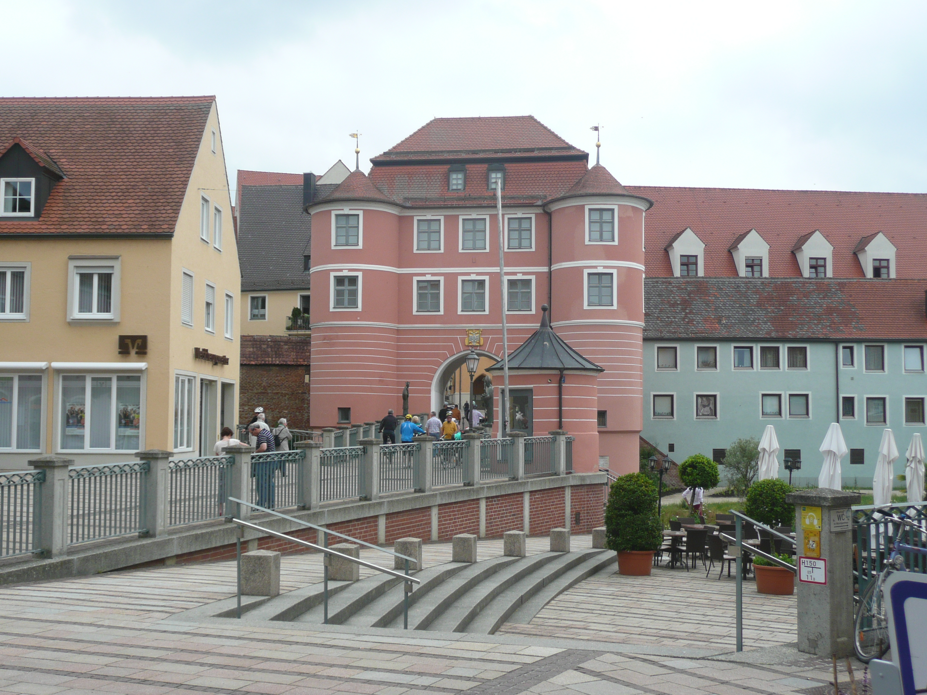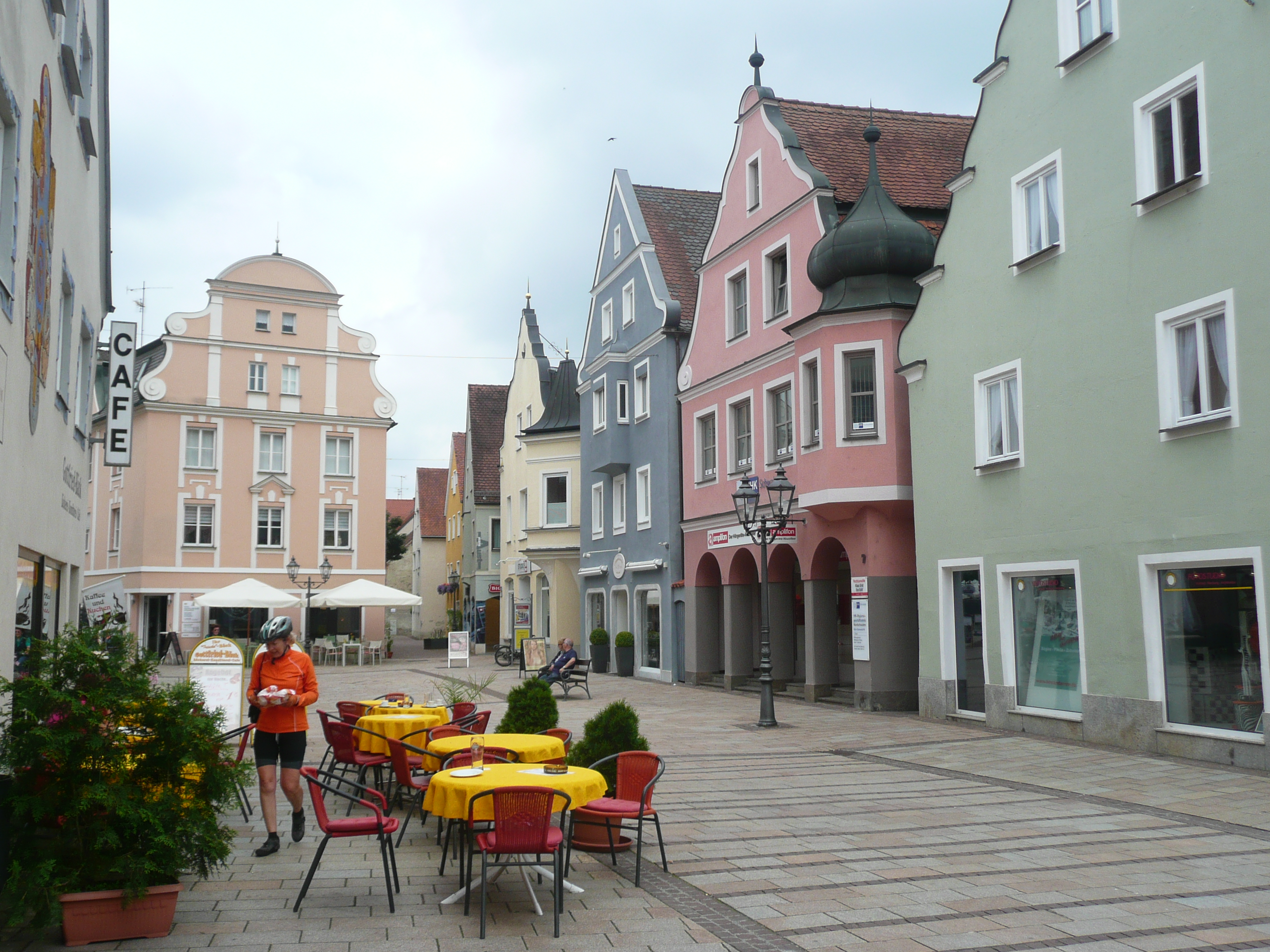 We pass through one or two small villages before we reach Donauwörth, a good place for a pitstop. As we sit with coffee and cakes we see most of the people that had stayed at the campsite last night cycle by. During the tour we tend to see the same cyclists travelling the route day after day – interestingly, even though some are faster and some are slower, with all the stopping and starting along the way, usually everyone turns up at the same campsite in the evening. In France we saw the same couple (with a poodle and table and chairs on their bikes which I have mentioned before) almost every day for a fortnight. We seem to have lost track of them since we reached Germany, but there are several other couples we have been seeing over the past few days since we set off on the Danube Trail.