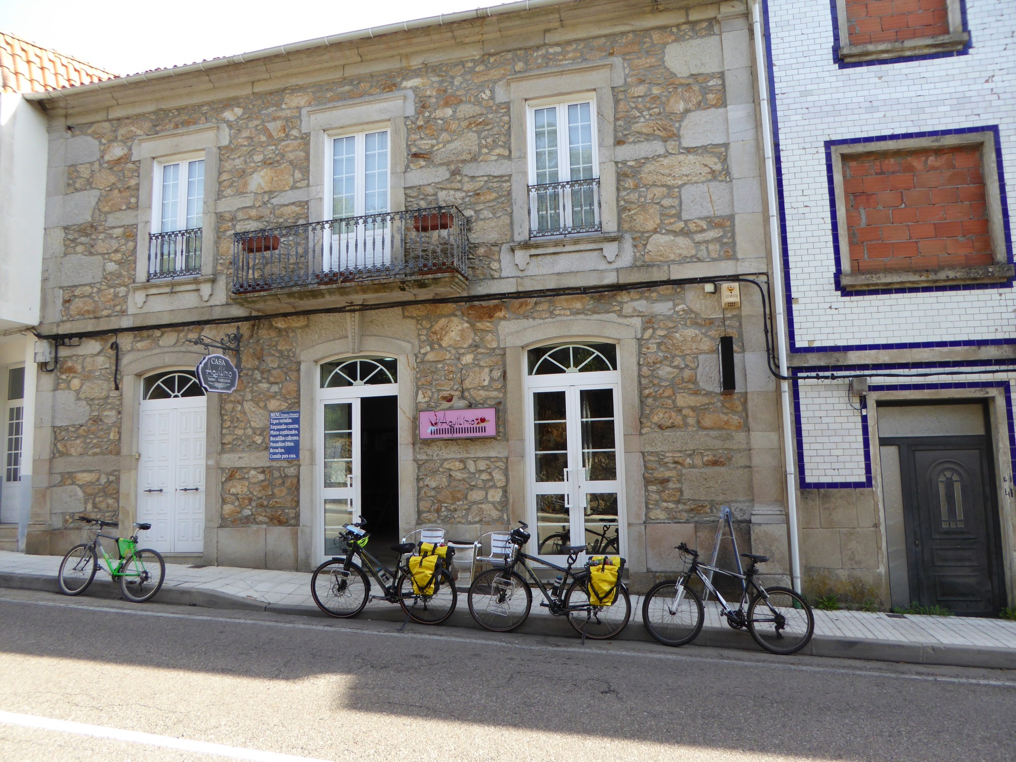 After a restorative lunch, we give up and just keep to the road for a while, but now it is much narrower and the tarmac surface is breaking up. Every so often along the road there are little lanes going off into the woods and at each one a prostitute sits and waits for customers. We’re clearly seeing all that Portugal has to offer!