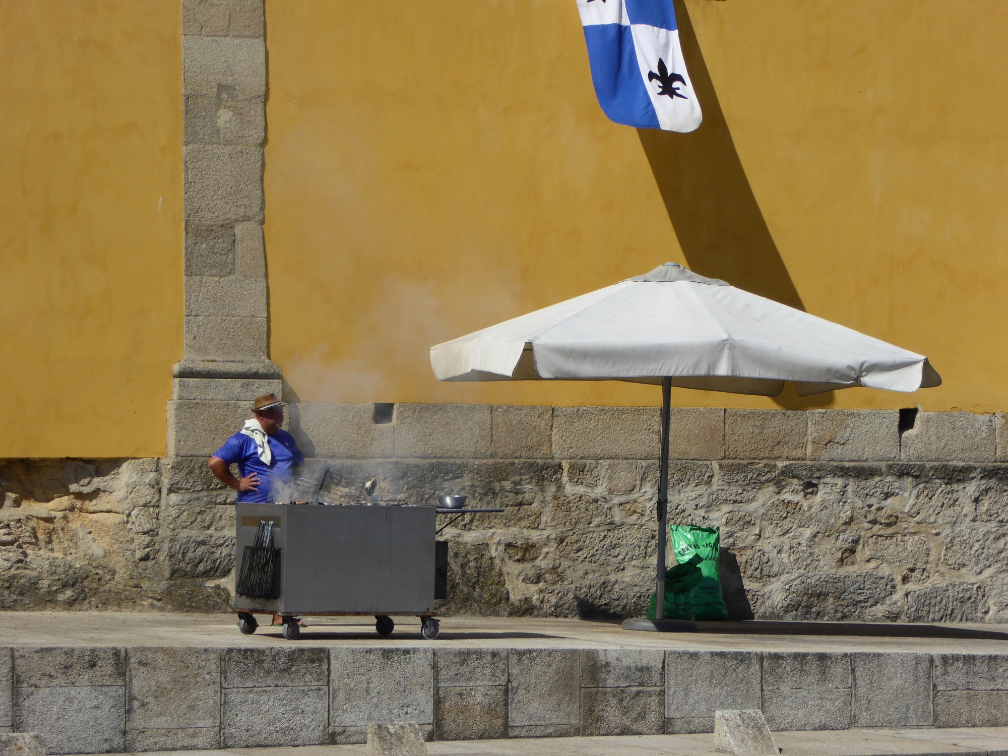 The sun is shining in that dazzling way it does over the sea and there is a salty sea haze – such a contrast to the disappointment of yesterday. Every so often we come to a populated part – a couple of beach bars and a few houses – all very relaxed. That is until we come to Vila do Conde, about 15 kilometres from Porto, when suddenly we are riding through what must be one of the biggest seaside resorts I have ever seen. There are thousands of people wandering along the promenade, which stretches for miles – many of them herding small children on bikes, roller skates, skate boards or scooters, bigger children whizz about on their bikes, old people walk at a snail’s pace and for some inexplicable reason most do it on the cycle track rather than the extensive area running alongside for pedestrians. None of this would have mattered too much except I have booked an apartment in Porto, not wanting to repeat yesterday’s experience, and I’ve arranged a time to meet the owner there which is starting to look overly ambitious. It gets to look downright impossible once we reach Porto itself where the crowds grow to the extent that the pavements and cycle track are completely blocked and the traffic is stationary in a giant traffic jam.